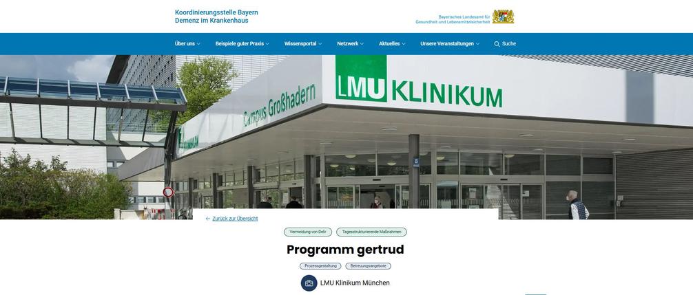 Auf den Seiten der Koordinierungsstelle Bayern "Demenz im Krankenhaus" (KBDiK) können Sie Details zum Programm gertrud als ein "Beispiel guter Praxis" erfahren.